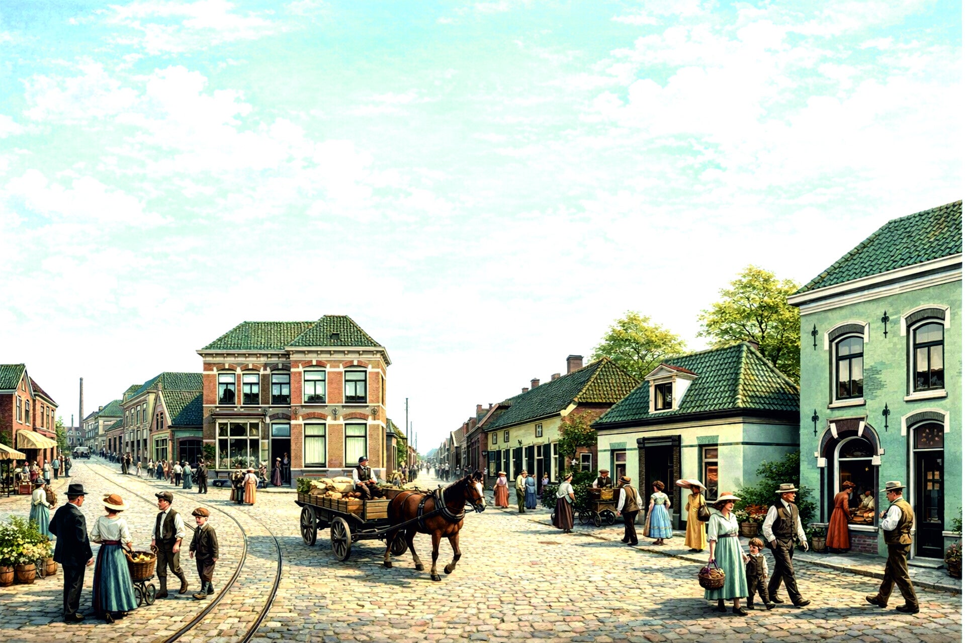 AI bewerkingen van tekeningen. Dorpsstraat 1910.